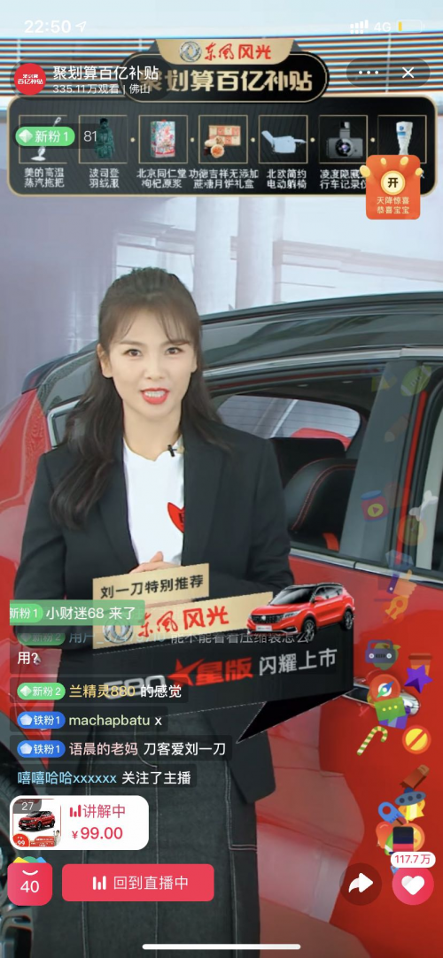 在聚划算的直播间,由聚划算的官方优选官刘涛直播带货,向注重精打细算的消费者推荐巨划算的SUV,整场直播无处不在的“划算”标签让人印象深刻。刘涛在直播过程中从用户购车需求入手,对风光580★星版的实车外观、空间、智能进行现场体验,对这款车的划算之处赞不绝口、金句不断,生活化、场景化、趣味化、精明化阐释这款车的四好划算。而在划算标签背后,品牌方、平台方、带货明星、选品特质的高度契合性无疑是本场直播的最大推手。